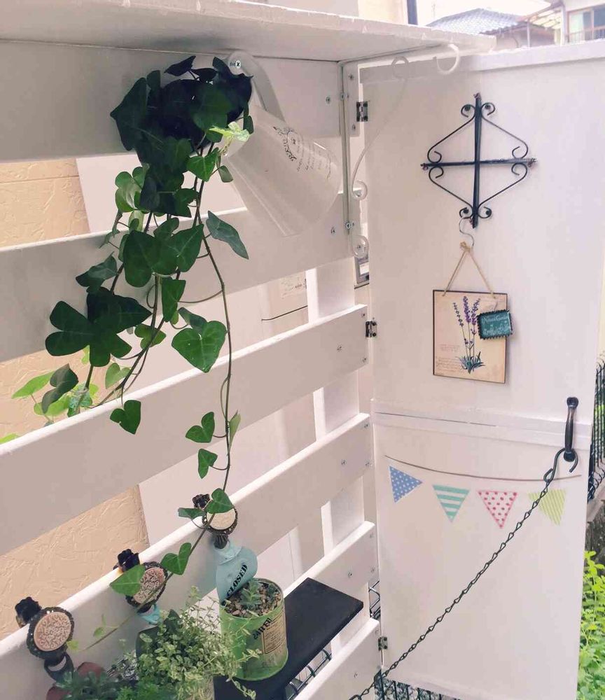 少しでも西日避けするため板を設置し、ドアのようなデザインにしてみました〜😊