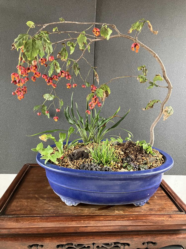 1 寄せ植え鉢に入れてから1週間位まゆみが良い色になりました。