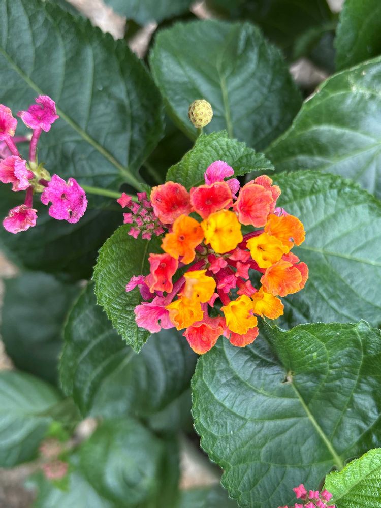 ②スーパーランタナ 夏の葉焼けが怖くて日陰に置いて全然花が咲かないのを、お日様ガンガン大丈夫ですよ!と教えて頂いて早速お日様に当てたら、お花は小さくなりましたが沢山咲いてくれました。お日様の力ってすごいですね🌞アドバイスありがとうございました。
