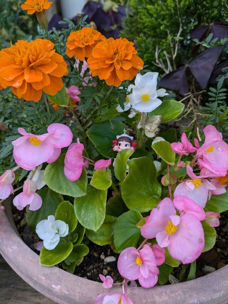 1️⃣挿し穂から育ったベゴニア&マリーゴールド💖お祝いにペコちゃんお祝いに来てくれました😊