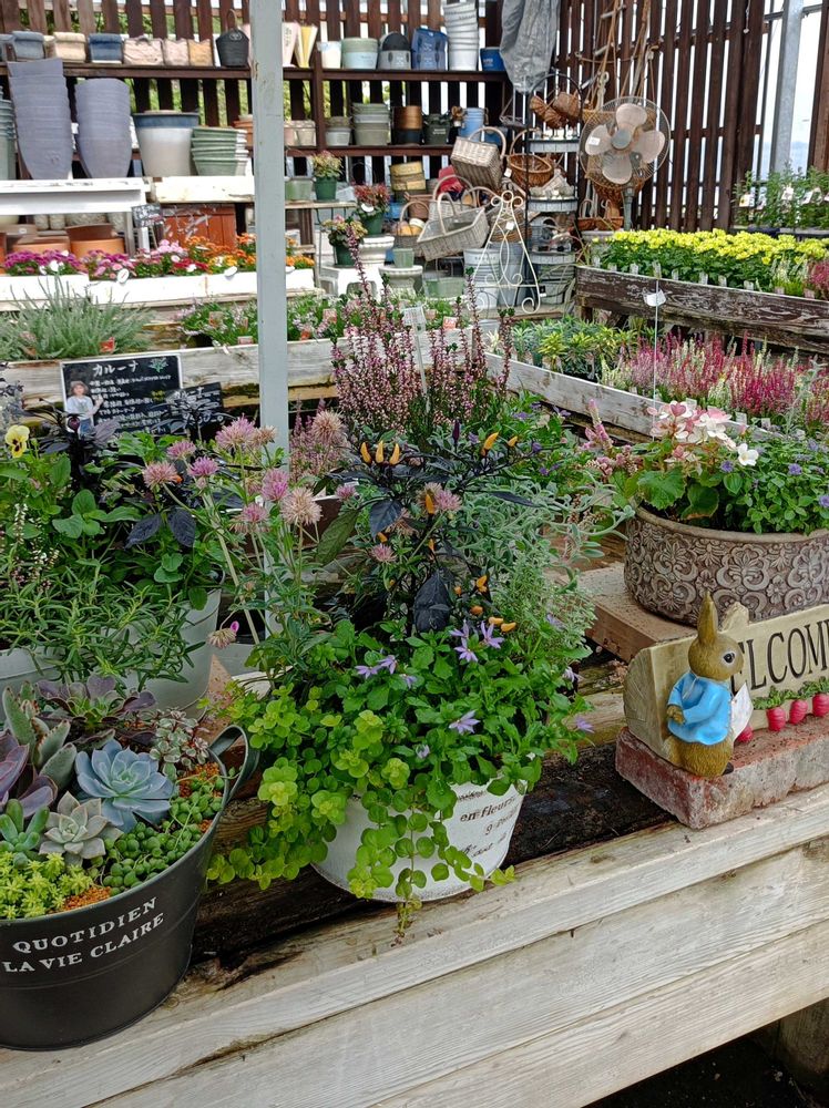 ちぃちゃん、中ちゃんとの思い出の道の駅に寄りました🚗私の息子はどうやらその道の駅前の道路を挟んだ側の医院の息子さん(高校、大学とも私の後輩、息子の先輩)の行ってる広島の病院へ就職したいみたいです☺️先週、見学へ行ってきたと言ってました🚗他県へ行っても繋がるN高校の和です✨今からの時期はやっぱりパンビオ、ストック、シルバーリーフ、唐辛子ですね🤭