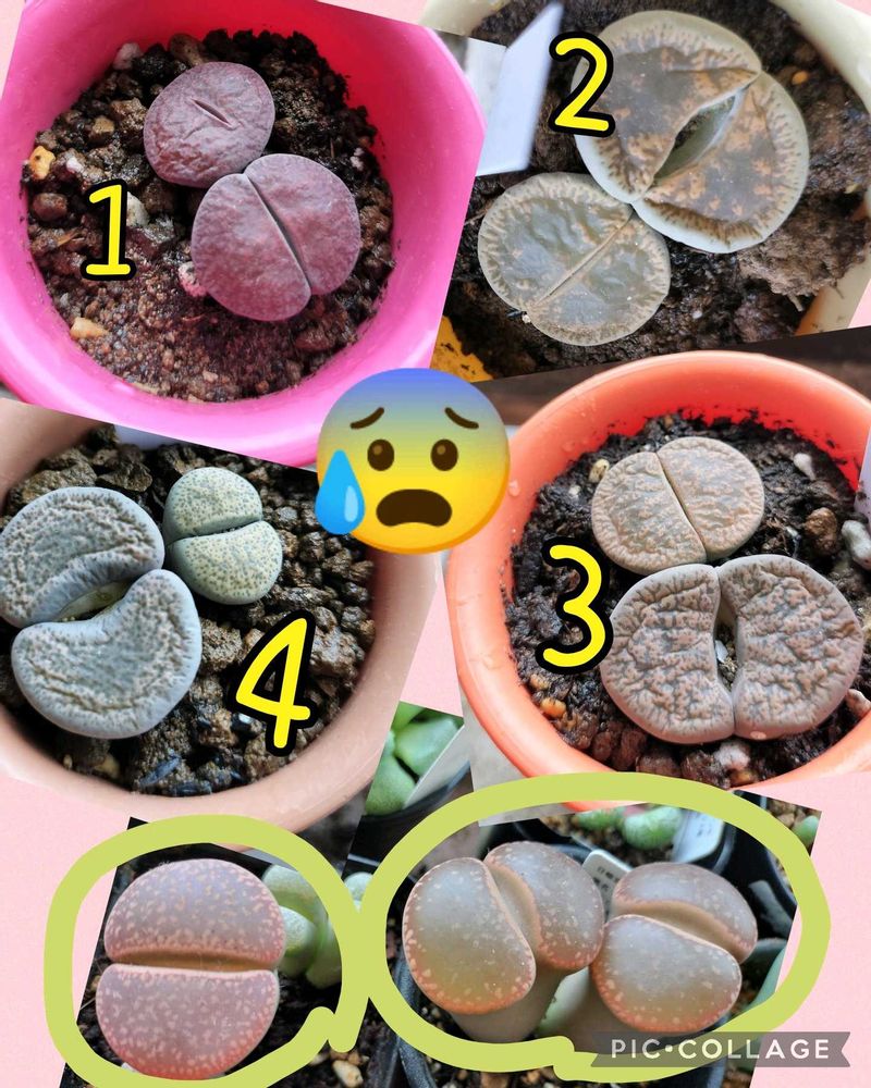 今!枯れそうな子を助けてやってと…リトープス4つ預かってきました!1.2.3.4.の子😵😵😵