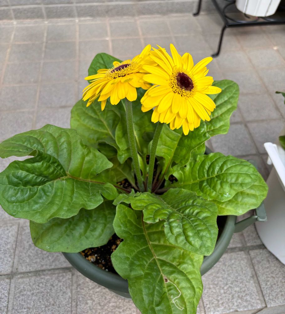 元気なガーベラさん他の色も欲しくなりましたピンク🩷やオレンジ🧡もありましたが叱られそうなので諦めます😢