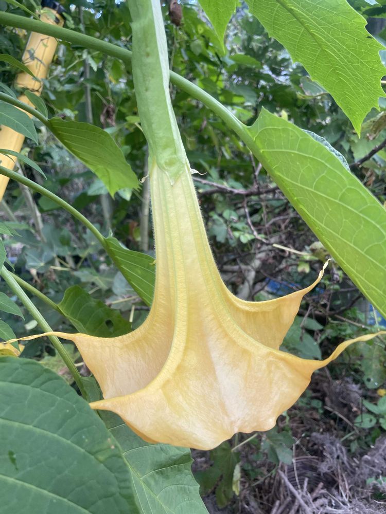 庭のエンゼルストランペット咲いてます。
