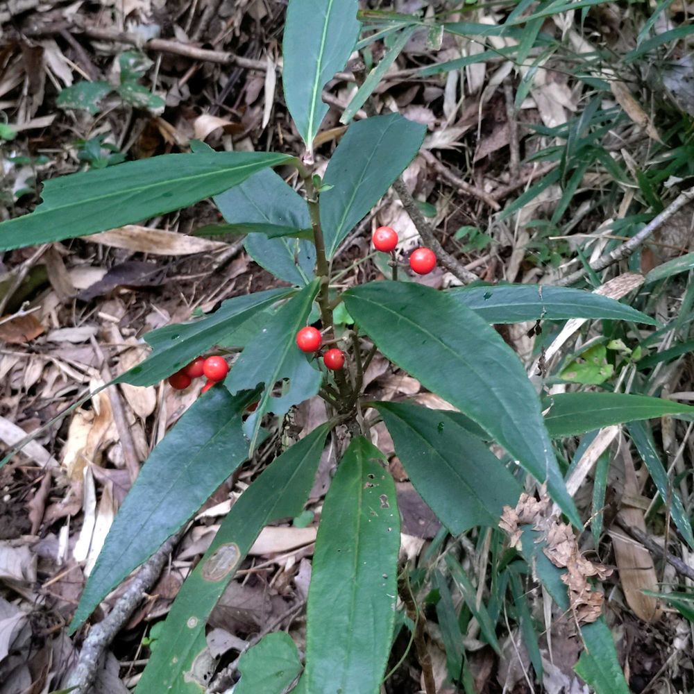 ②林道の中でカラタチバナ(百両)に赤色の実が付き見られました🔴