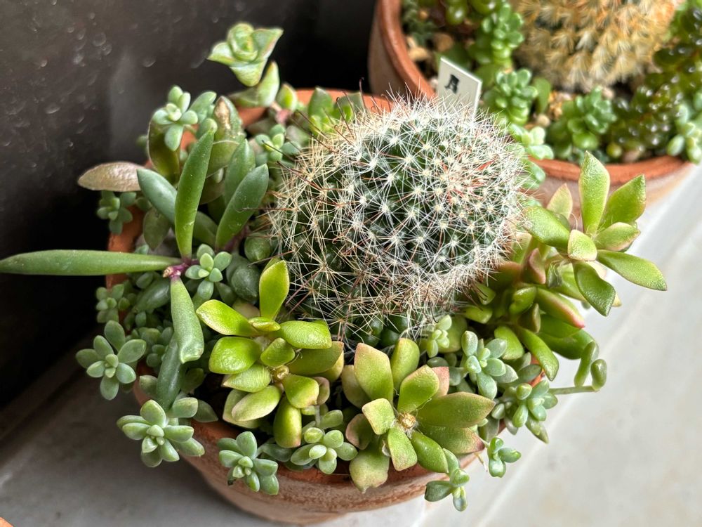 寄せ植えの形が良い感じに。サボテンたちは暑い夏を乗り越えて、気分が良いらしい。