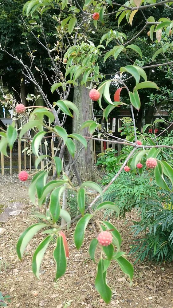 地元の神社に植えられたヤマボウシに、赤い実がたくさんなっていました🐱