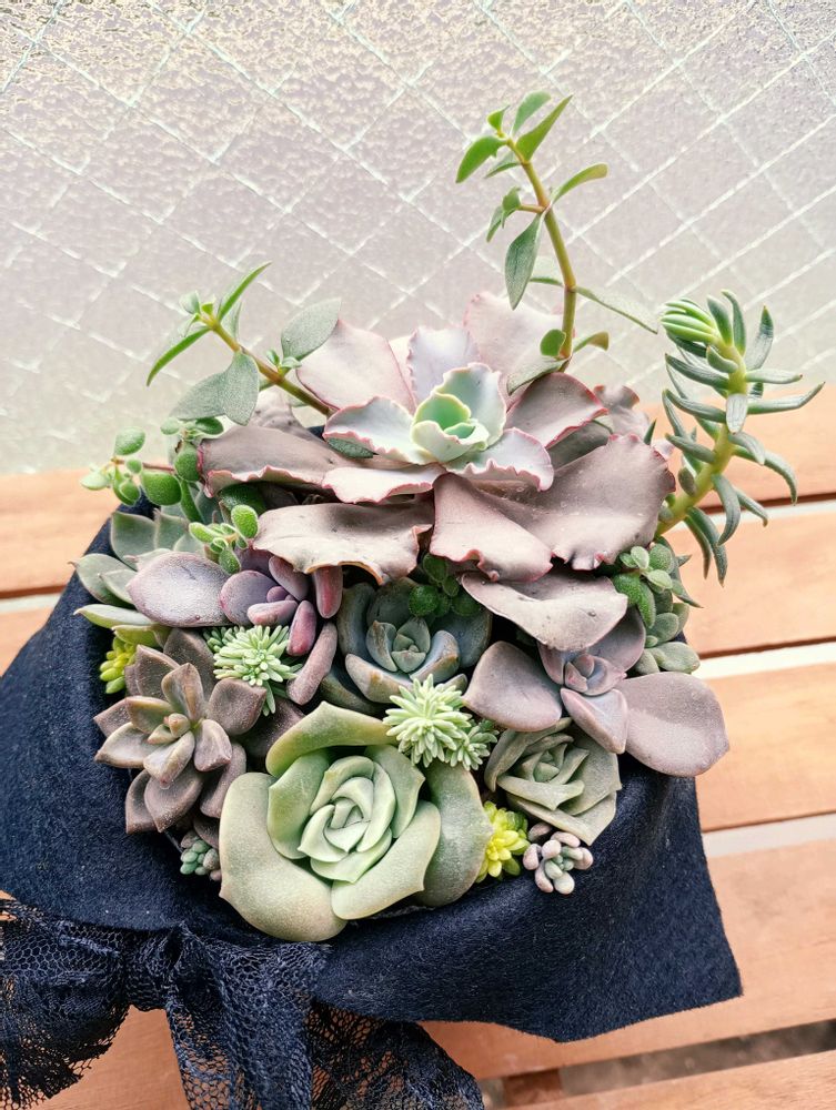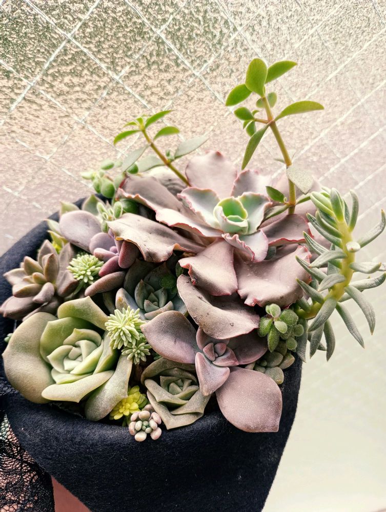 そしてハロウィンっぽい多肉ちゃんを選んで寄せ植えしました🖤🦇🎃ʜᵃˡˡᵒʷᵉᵉn🎃🦇🖤