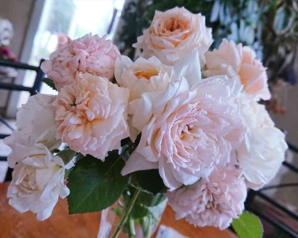 台風に備え咲いてるのカットした白~淡い系の子たちをまとめて🎵