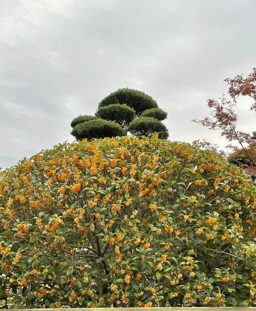 この時期の金木犀は短い花期ながらも存在感がありますね。JR木幡駅の駅前広場にも立派な金木犀が1本聳えていたのですが、数年前改築のために切られてしまいました。