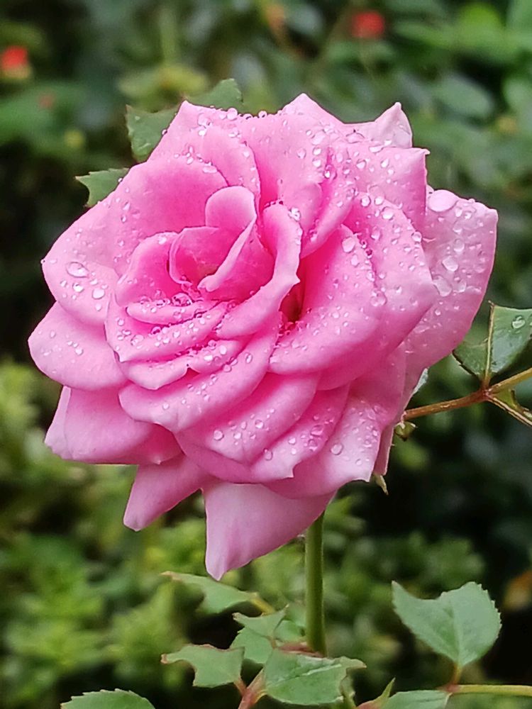 雨つぶが光ってピンクのバラが輝いてますね〜❣️