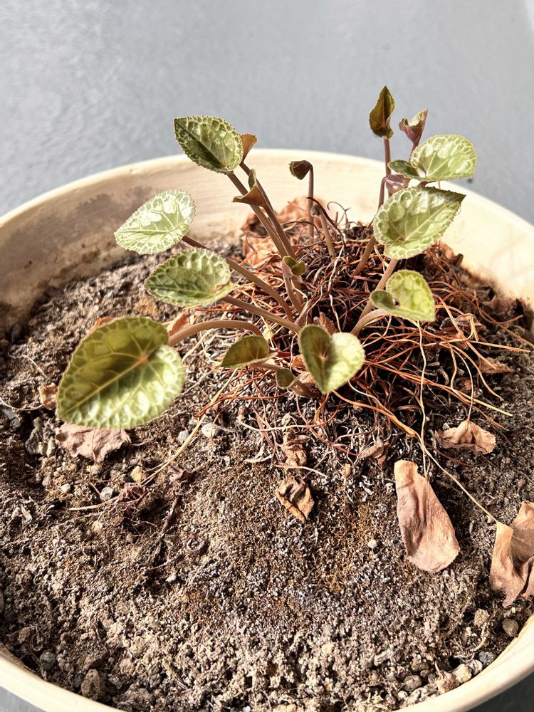 10年以上経っているシクラメンです。毎年、咲いていたけど、新しい家は、暑さ対策で、日差しが入らないような仕様なので、咲かなくなってしまいました。寒さに強そうなガ-デンシクラメンの種類だと思うので、日中は、外に出してみました。経過は、また、ご報告します!