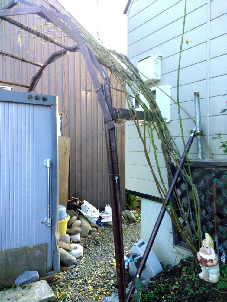 この後にアーチを外し不織布で包み 根元に牛肥を撒く予定です