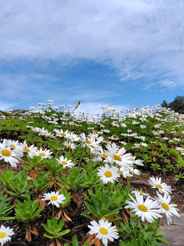 白がとっても素敵に撮れてますね👍青い空に💙沢山の白いはまぎくが映えてます♡