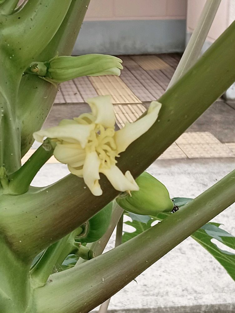 パパイヤのお花さん 初めて見ました~👀✨ 白くて可愛ぃ💕ですね。