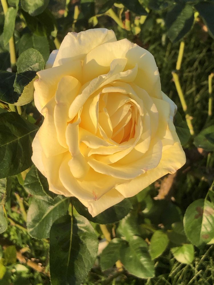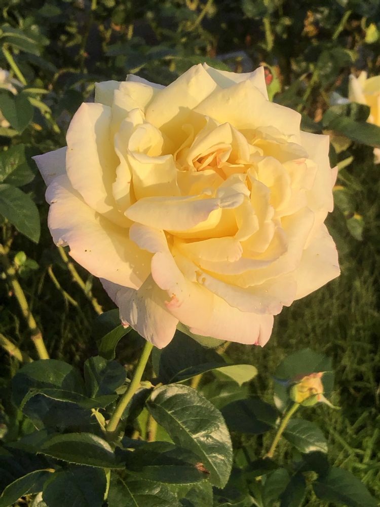 先日、万博公園のバラ園にて、フランス🇫🇷製の薄い黄色の入ったバラ「ピース」をパチリ!📸🌼🌿😊😄🌇🕊️✌️