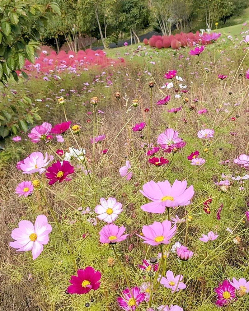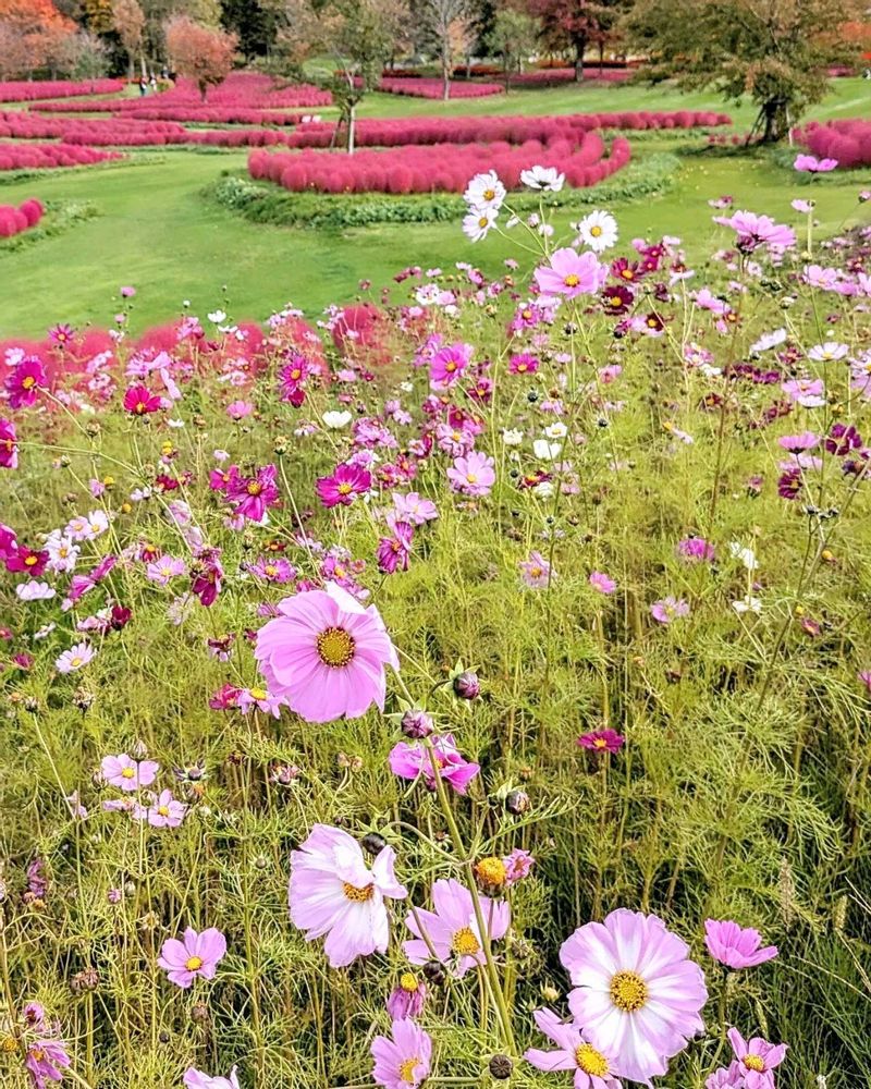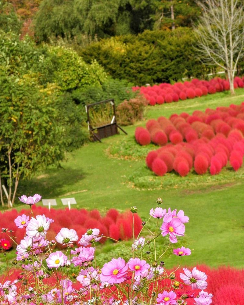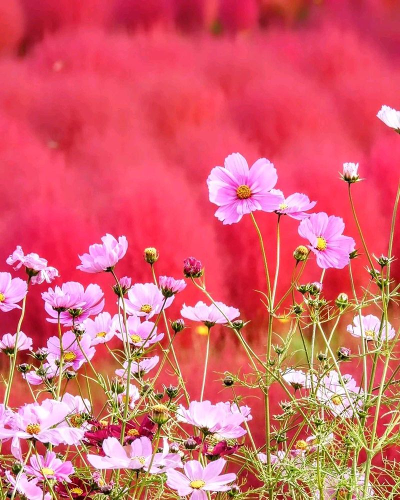 コスモスとコキア,コスモスとコキア,秋の風景の投稿画像