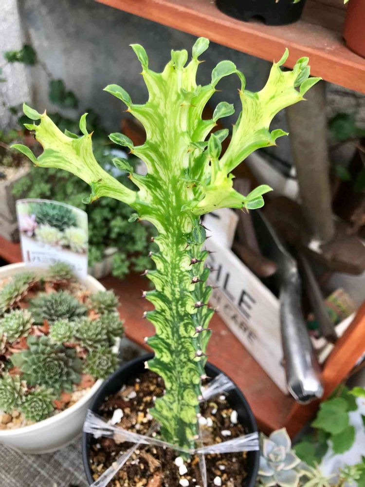 バルコニー/ベランダ,ユーフォルビア ラクテア ゴールド錦,多肉植物の投稿画像