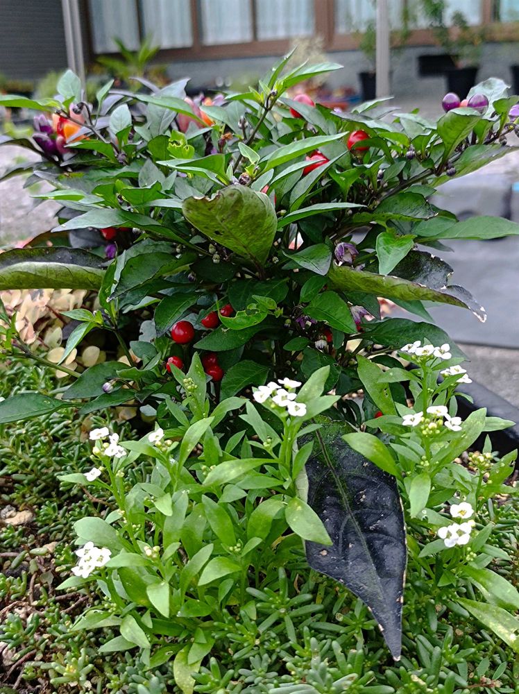 アリッサムと観賞用唐辛子