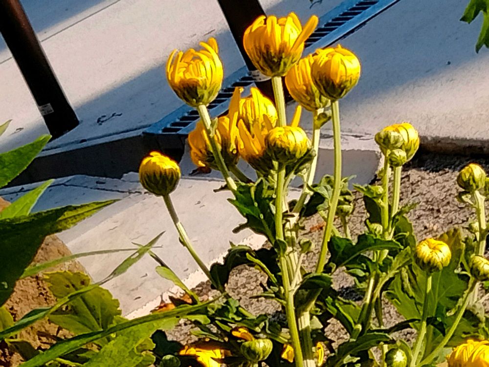 挿し木したまま手入れしてないから地を這う菊の花😅
