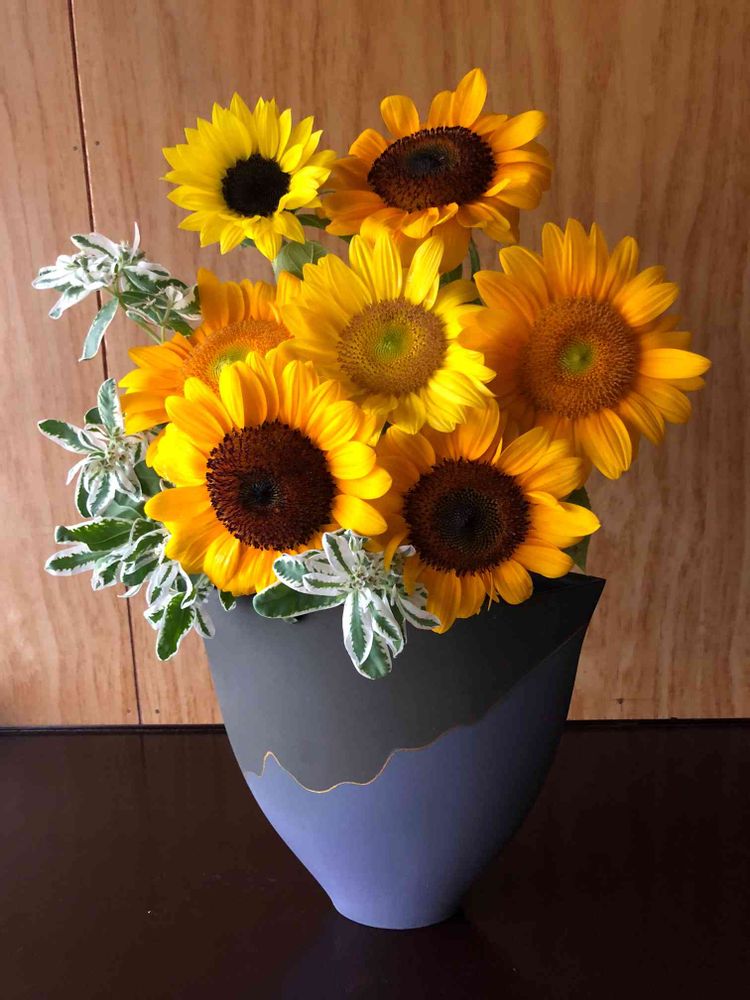 家の庭で咲いたヒマワリ🌻です!台風で倒れかけたので切り花にしてみました🎵