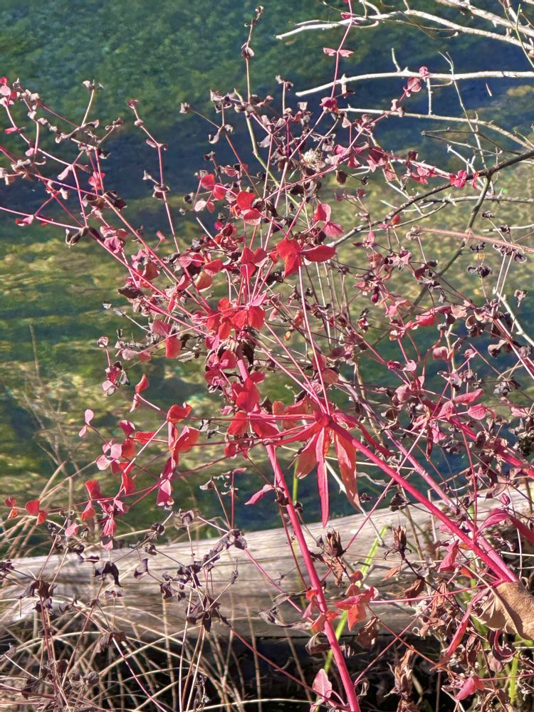 何かの草とごっちゃになってますが、一際鮮やかに真っ赤に紅葉してるのは、タカトウダイです😍