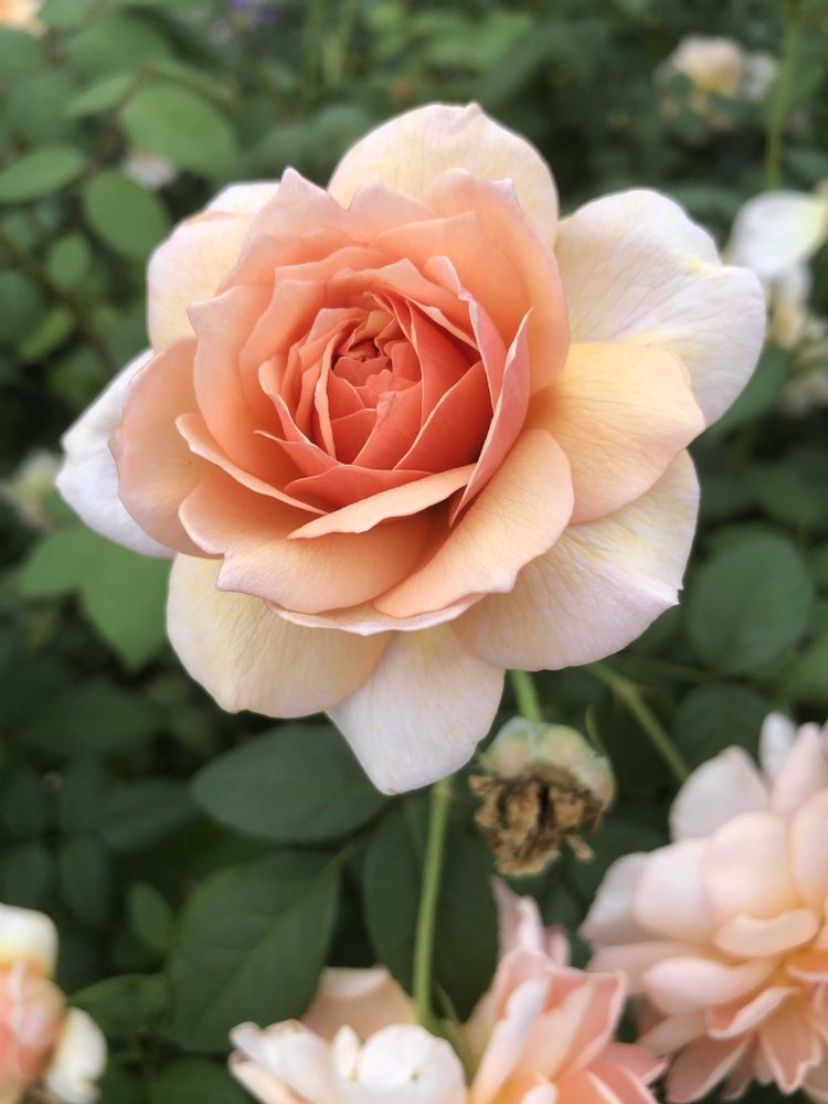 先日、万博公園のバラ園にて、イギリス🇬🇧製のバラ「グレイス」をパチリ!📸🍑🌿😋🤭😄👌
