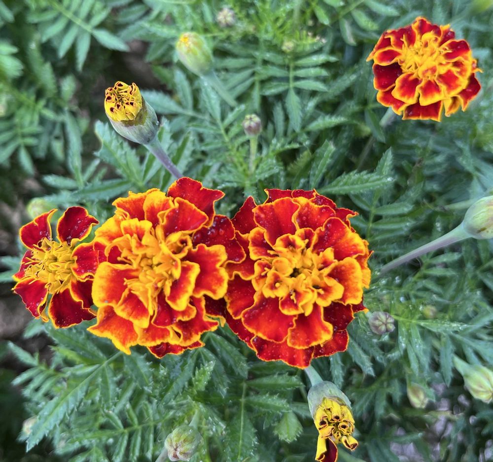 秋咲きのマリーゴールド🏵️近くのお友達から種を頂いて蒔いたのですが夏咲かなくて、沢山咲き出しています🏵️派手のお花だけどよく見ると可愛い😍