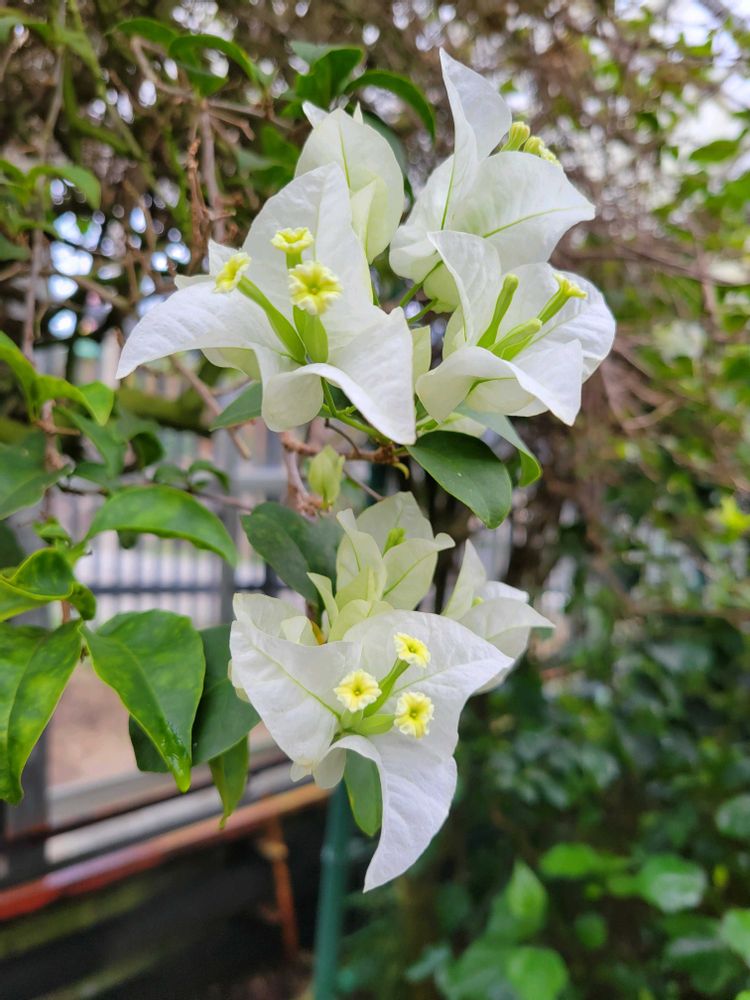 白花のブーゲンビリア(この園ではブーゲンビレアと呼んでいます)は、僕も初めて見ましたよ💕