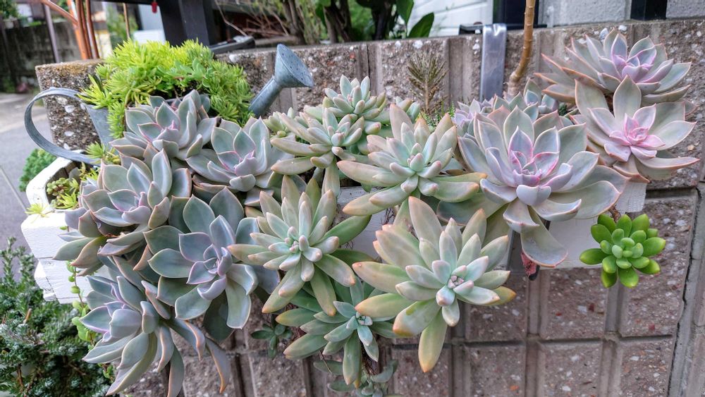 うちの多肉植物も木箱や鉢植えに植ったのが今年の暑い夏の間に溢れ出てきています😅