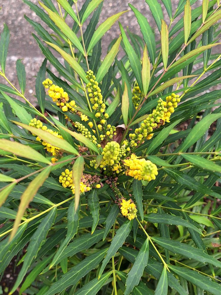 このpicが目につきました♪我が家でも現在咲いています。購入時、マフォニア・コンヒューサーという名札がついていました。