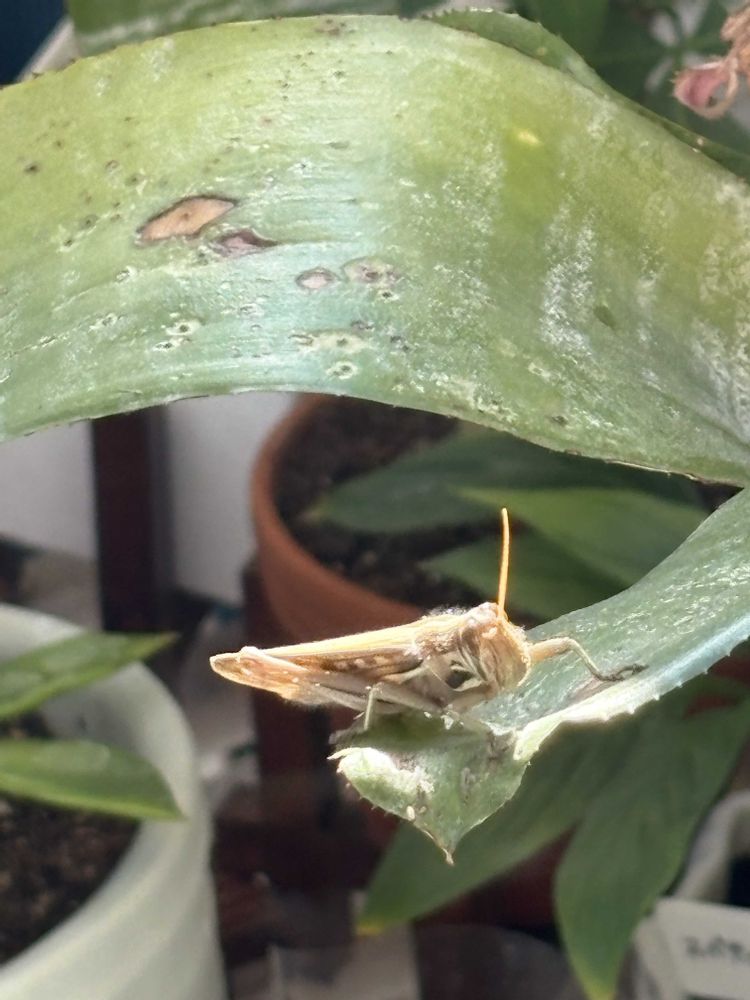 昨日、一昨日の集中豪雨が嘘のように快晴になったのでバッタも遊びに来てくれました🤗