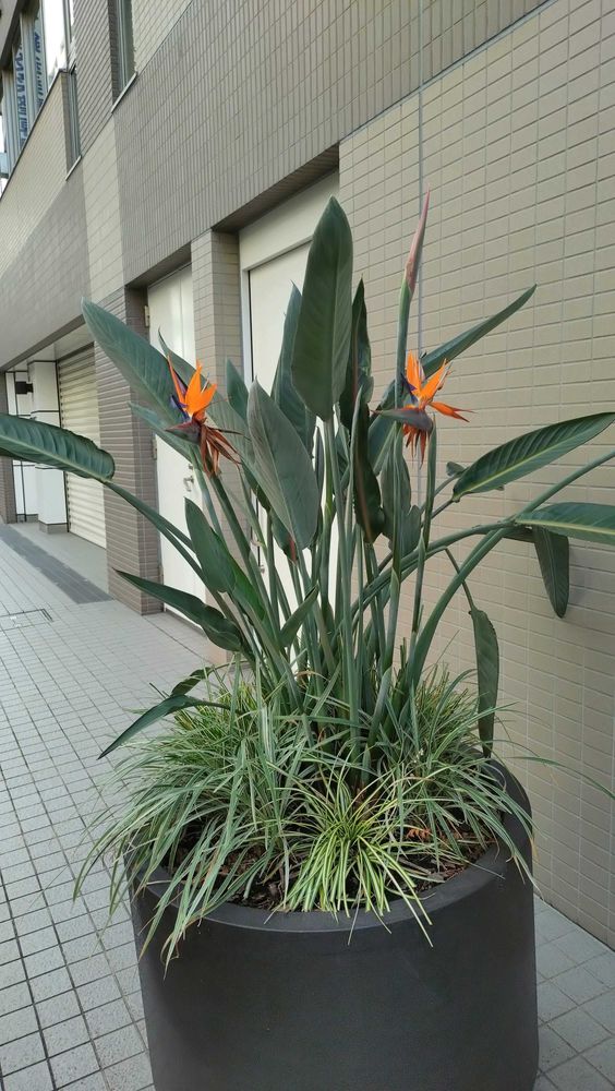 ❺医療専門学校の前にストレリチア(極楽鳥花)の大きな鉢が三鉢有り圧倒されました