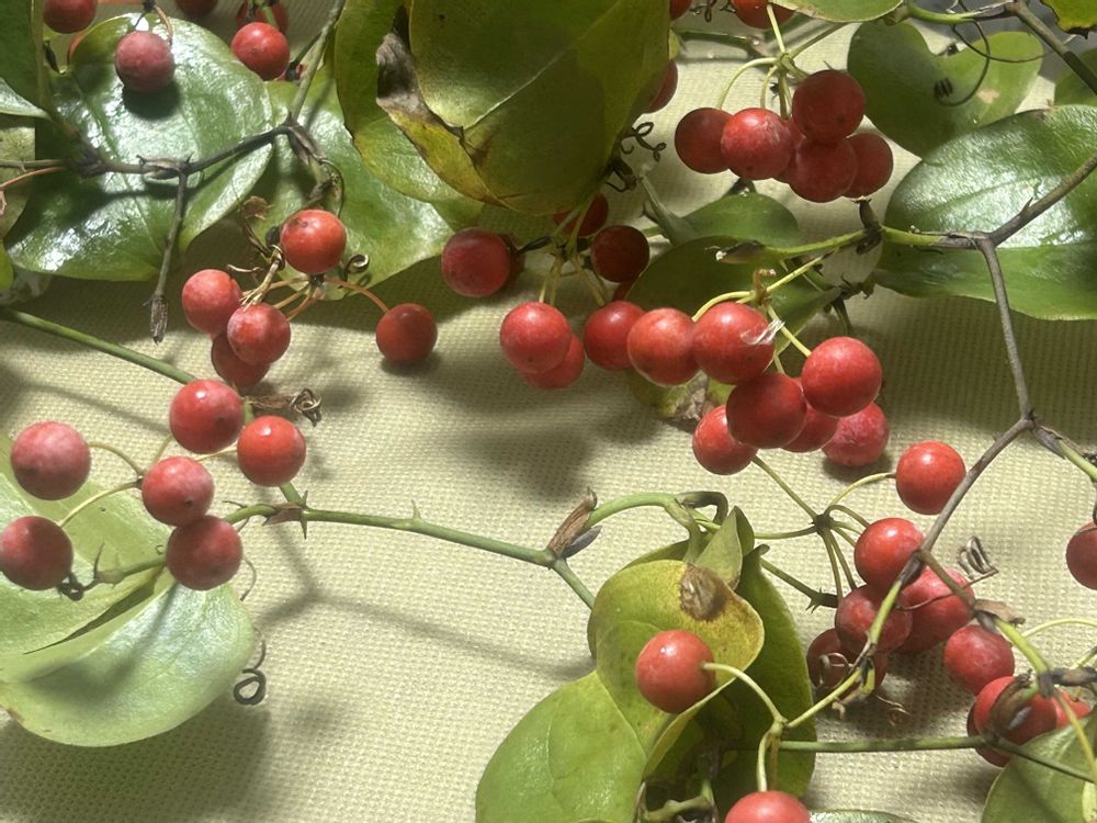 春に花が咲いていたサンキライが赤く実っているのを見つけて🤭🍒