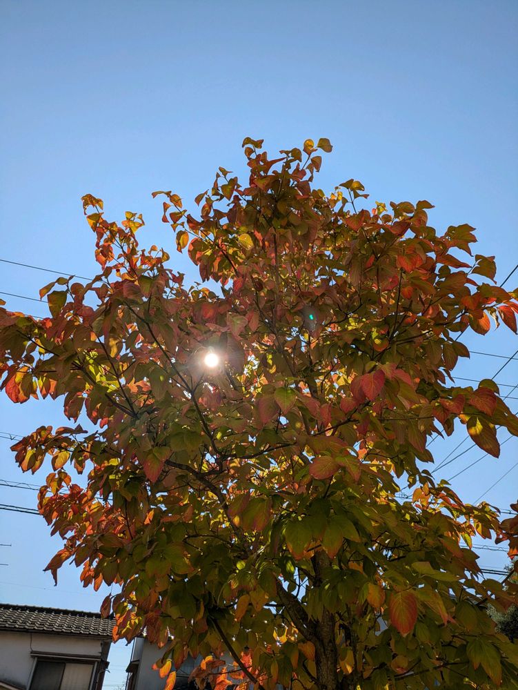 とても良い天気☀今年はキレイに赤く色づいてくれたハナミズキ🍁木漏れ日ムズカシイ😅