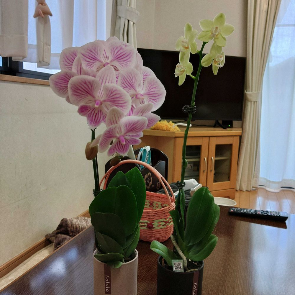 その作業の声が掛かる前に、ママちゃんさんへミディ胡蝶蘭を迎えたくなってる事を相談し、訪問看護の看護師さんが帰られてから、自転車でこの子2人を連れ帰りに行きました💚🤍💗🤍💚💕