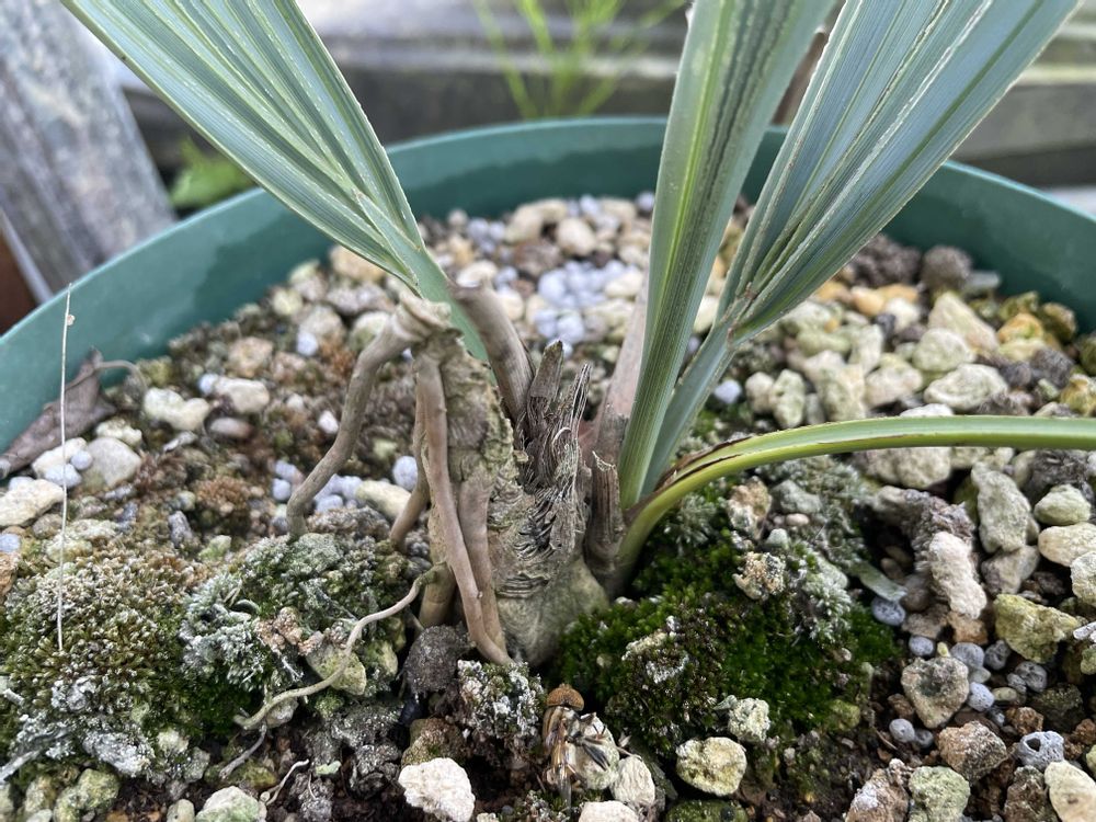 ブラヘアアルマータより耐寒性あると思うのでこの大きさでもうちでは普通に地植え出来ると思いますが、植える場所が重要で、ヒールの向きを考えないと中心がどれくらいズレてくるかわからない、かつ幹が上がる前から巨大な葉を幅広く広げて場所とるようなので、他の植栽の位置決めよりどうしても最後になってしまうのです🌳
