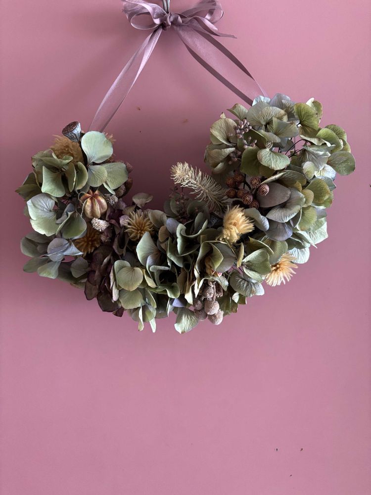 紫陽花ドライフラワーのリース