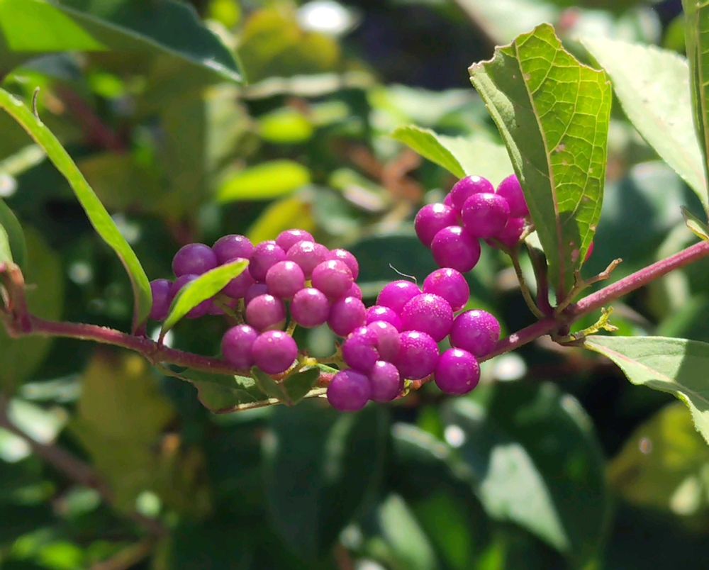 小紫の実は紫色と思っていましたが、太陽の陽を浴びてピンク色にも見えました💗😄