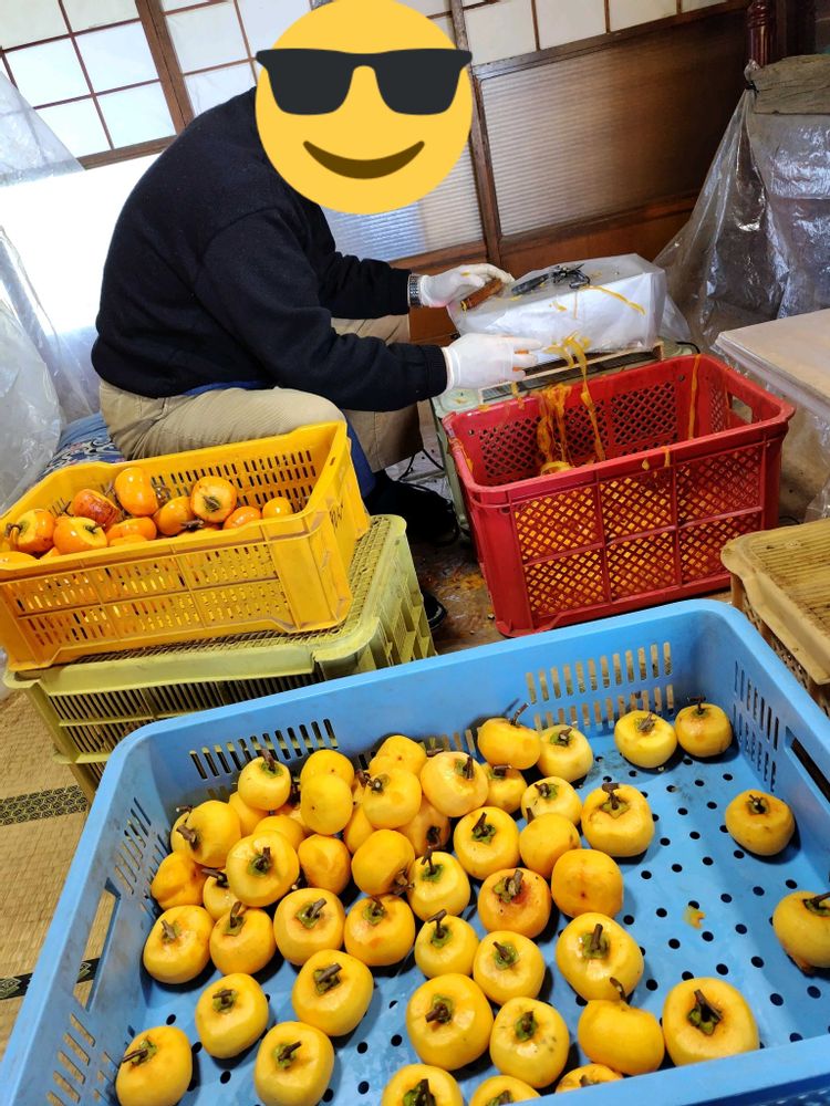 今日から、収穫した紅柿を干し柿にする作業を始めました🙌💓