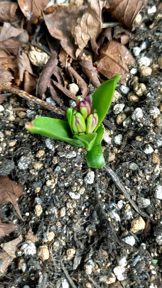 水耕栽培で花が終わった後のヒヤシンスを土に植えてみてたら、、芽が出て来た😳❗