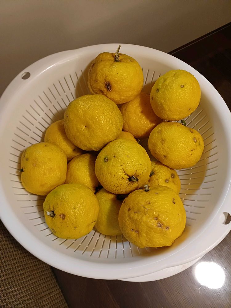 ホットゆず、焼酎の柚子割りとか、ジンソーダに柚子風味をつけたりして消費していきます🎵
