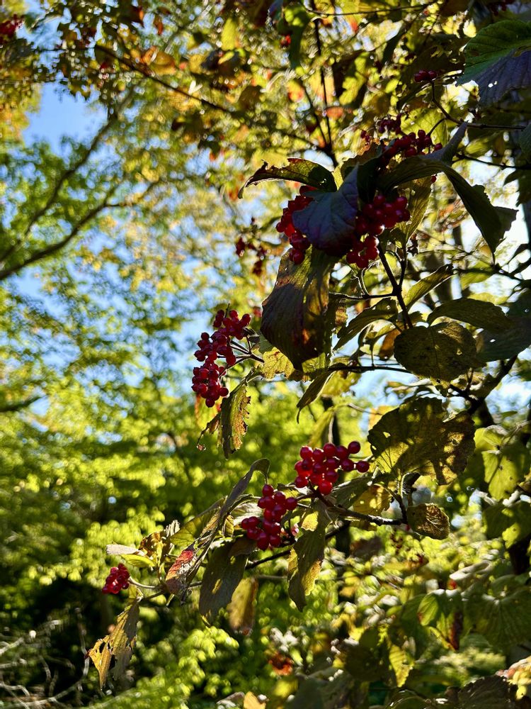 3枚目は4月のバルコニー小庭のミヤマガマズミ。猛暑に焼かれて赤い実も葉も黒焦げです😢