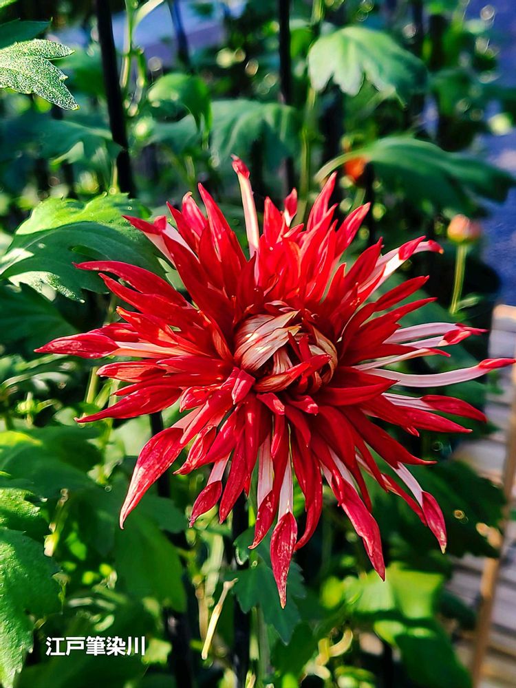 江戸時代に江戸で発達した古典菊です。花弁が中心に向かい折れて巻くよう咲くので狂い咲きとも言われている様です💖 やっぱり菊は気品ありますね✨