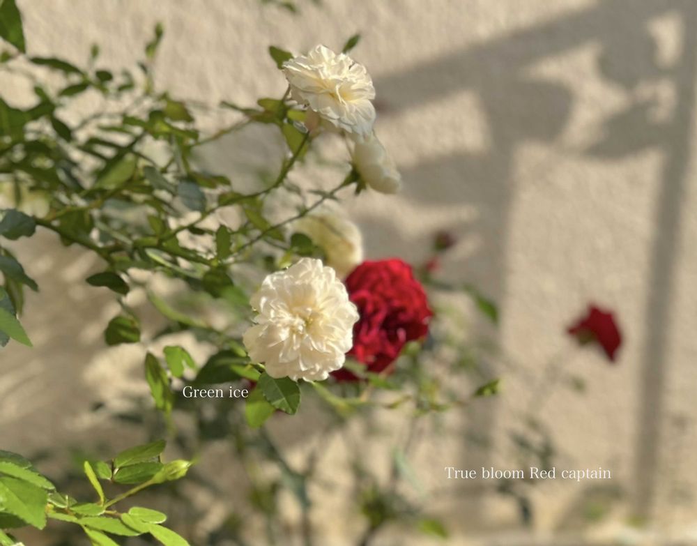 ミニ薔薇グリーンアイスは、夏でも咲き続けて一休みの後、枝を伸ばして、また咲きだしました♡
