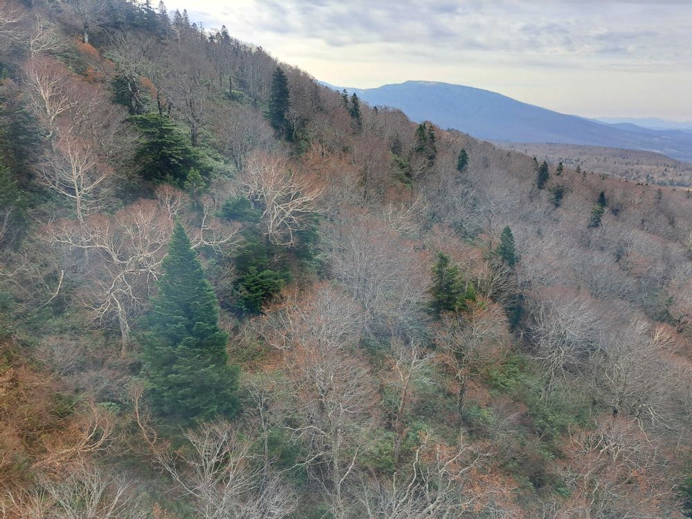 前日は強風で運休してました。1日は始発から動いてましたので、紅葉も終わり裸の山を見た感じです。