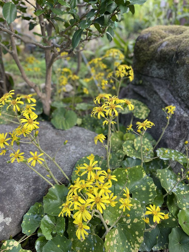 実は子どもの頃、日陰にあって葉っぱが濡れたように照かっていたツワブキが怖かったんです😅年齢とともに、感じ方も変わるものですね。