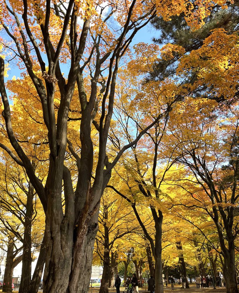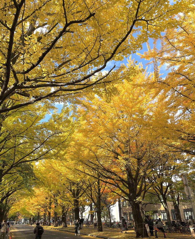 いつみても銀杏並木の紅葉が美しい北大の秋の彩り