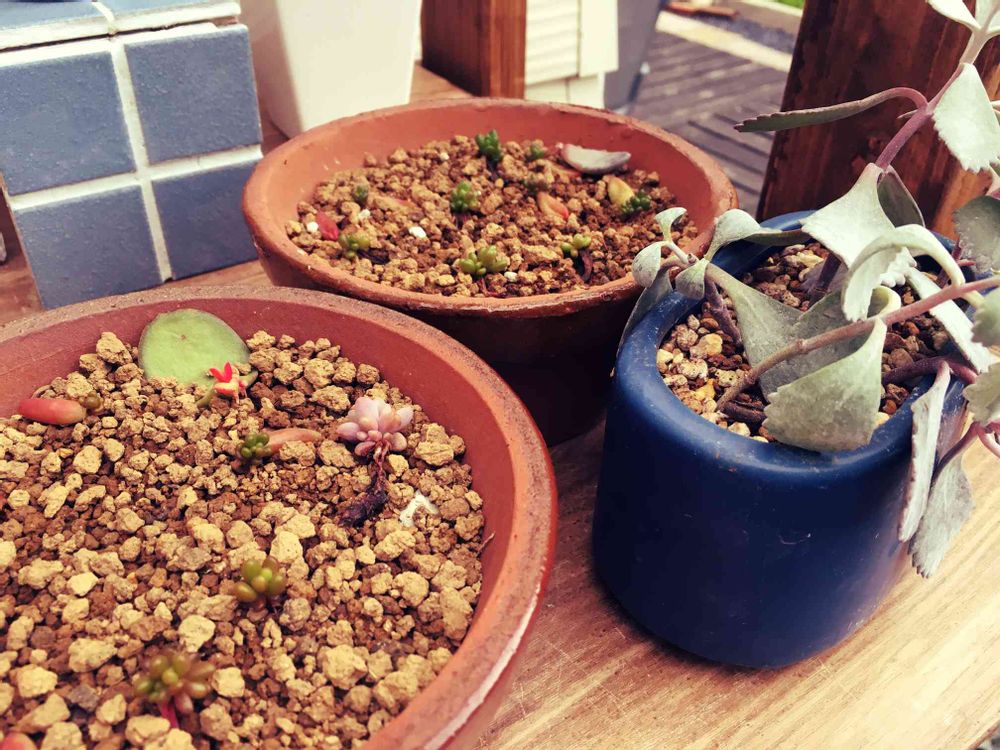 増やしたいスペース。カランコエプミラはお義母さんが挿し木で根を出してくれたものを植えてみた。葉挿しはほぼ虹の玉でちがうのがチラホラ。。