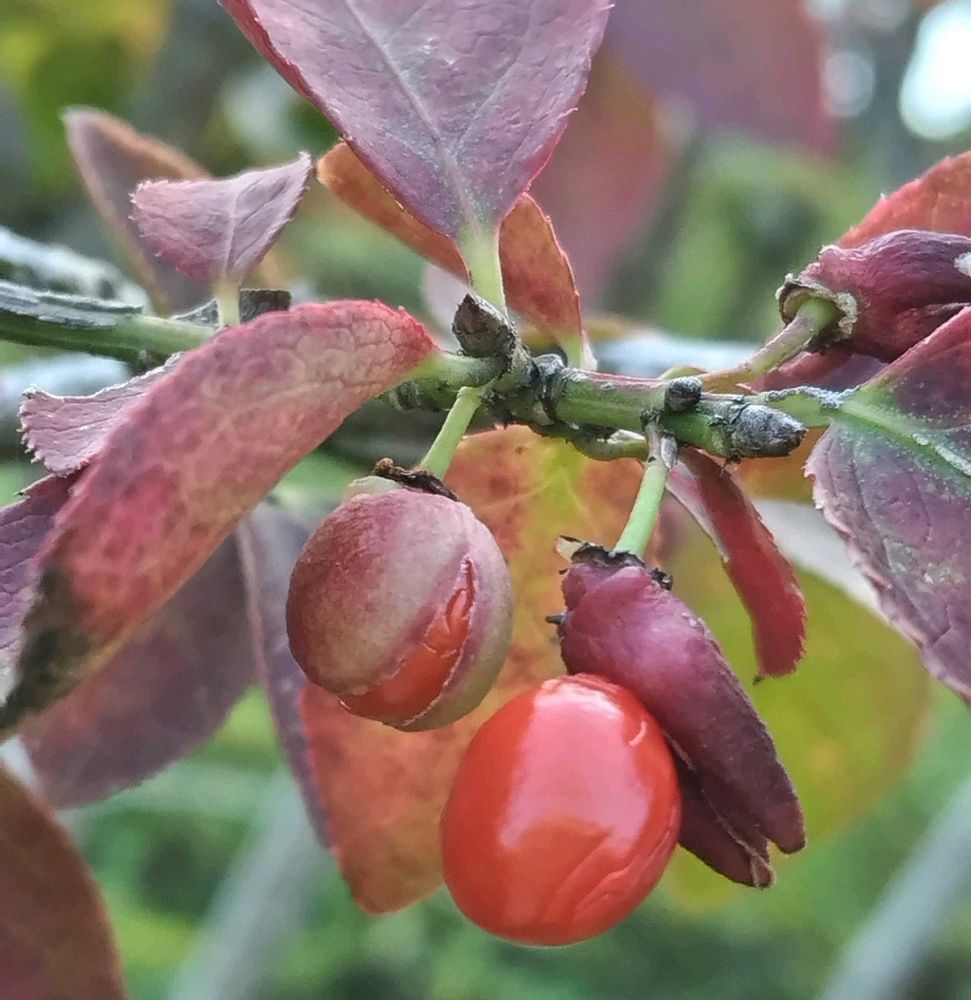 赤い小さい実ですが、少し色付いた葉っぱとともに秋を感じさせてくれました❣️